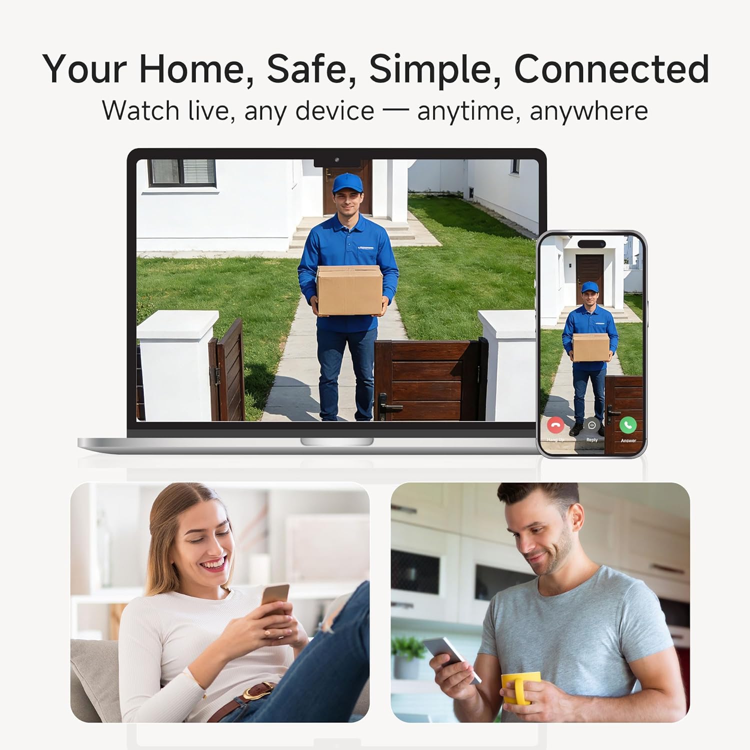 【Real-Time Communication】Get instantly notified when your package arrives with Delivery Guard. Plus, you’ll receive pick-up reminders and alerts if someone approaches. Stay connected to loved ones, visitors, or pets with clear two-way audio, enabling real-time conversations.