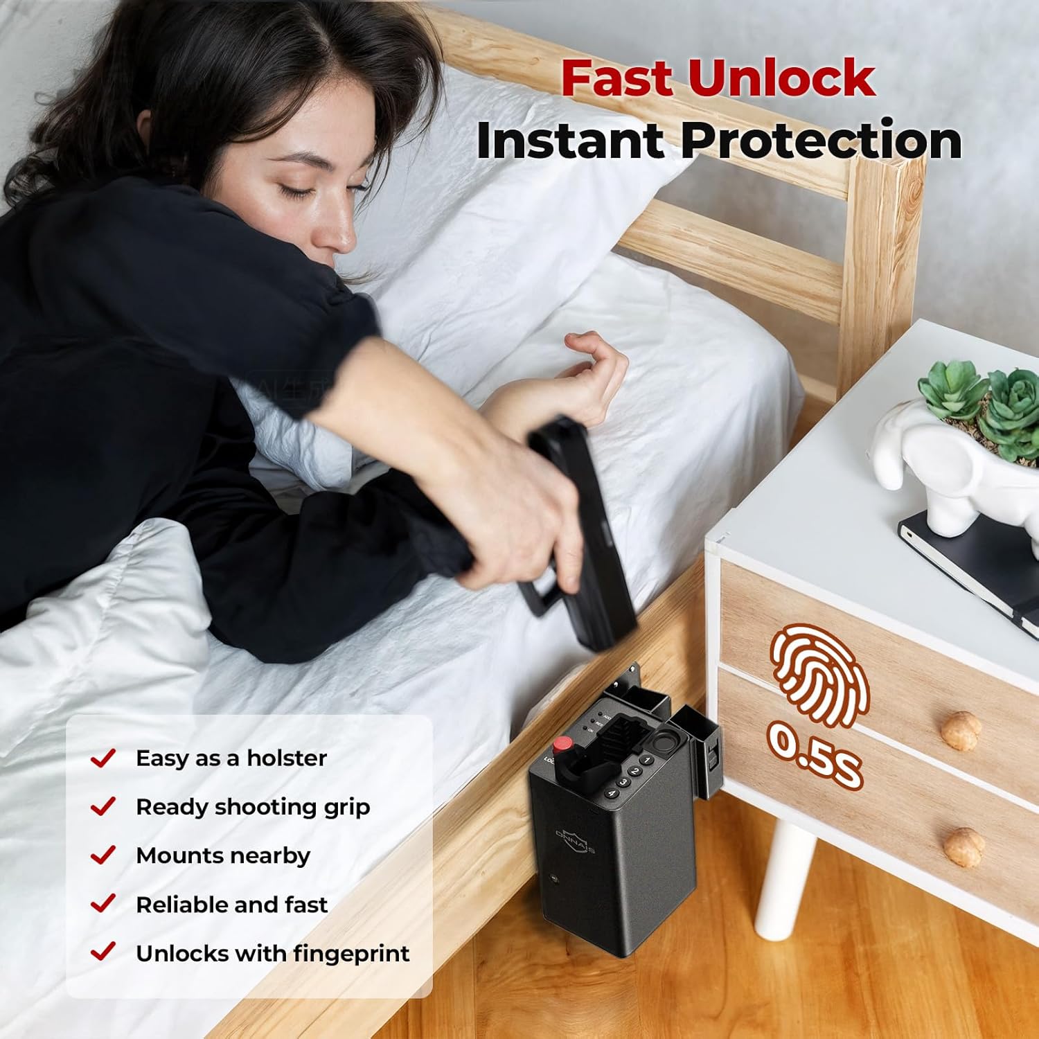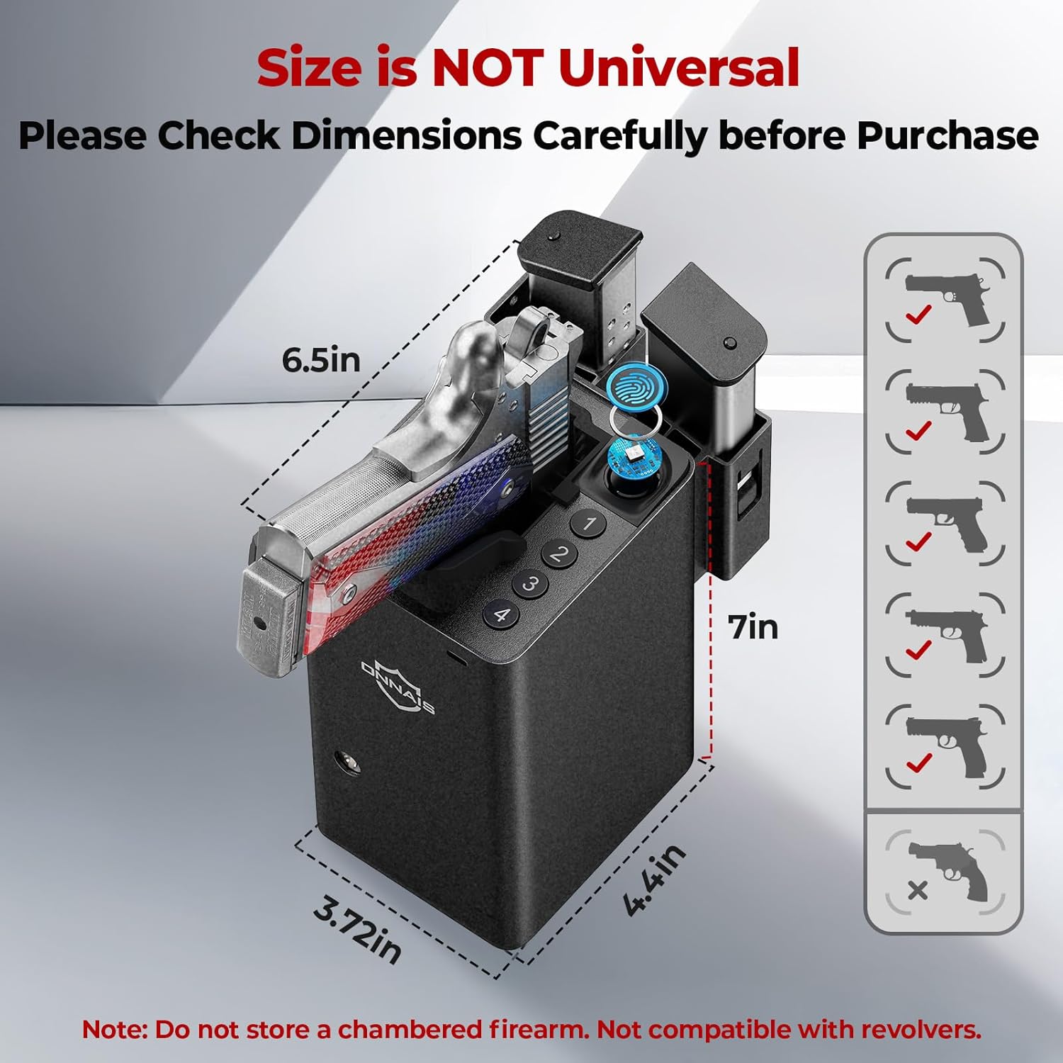 ONNAIS Biometric Pistol Gun Safe – Car and Bedside gun Safe for handgun with Fingerprint Trigger Lock for Quick Access, Fast Entry for Large Vehicle Console or Any Mountable Spot, Gifts for Men