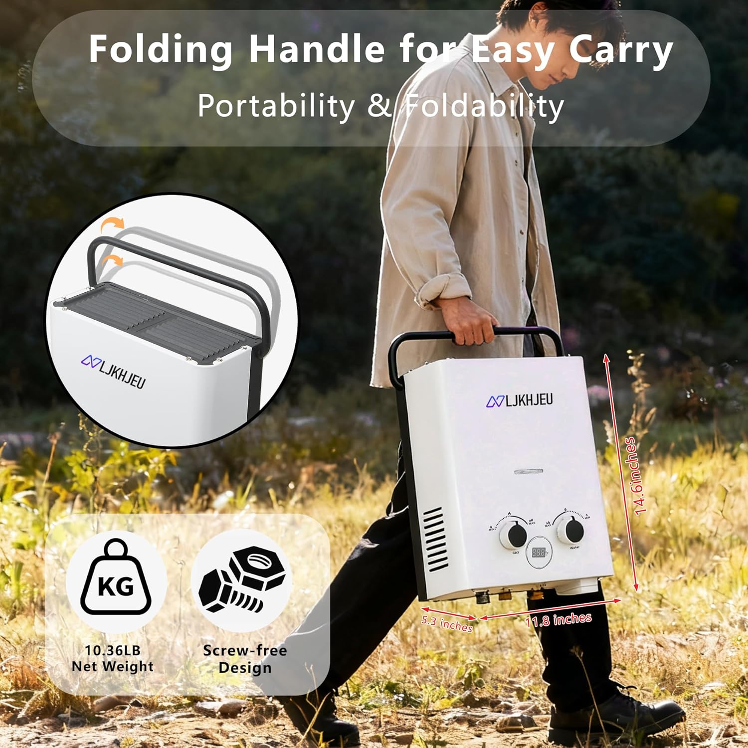Outdoor Propane Tankless Water Heater – 6L 1.58 GPM Portable Gas Water Heater with Digital Display Overheating Protection & Handle for Camping Barn Cabin RV Washing Pets