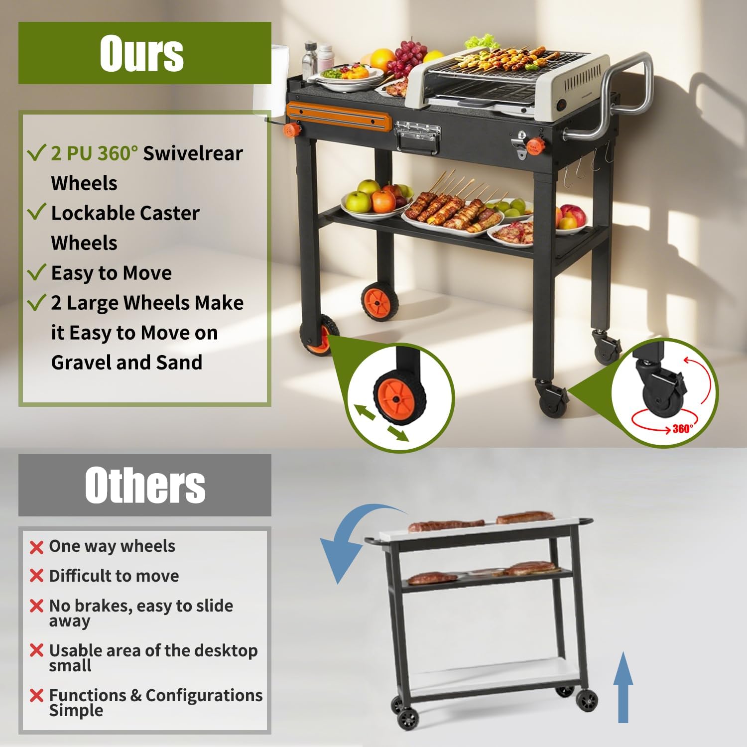 Outdoor Carts With Wheels – The outdoor pizza oven stand & grill cart comes with wheels and can swivel 360 degrees for easy movement. once you find the perfect spot for your outdoor grill station, just depress the locking button on the wheels to hold it in place while you relax. applied for appearance patent.