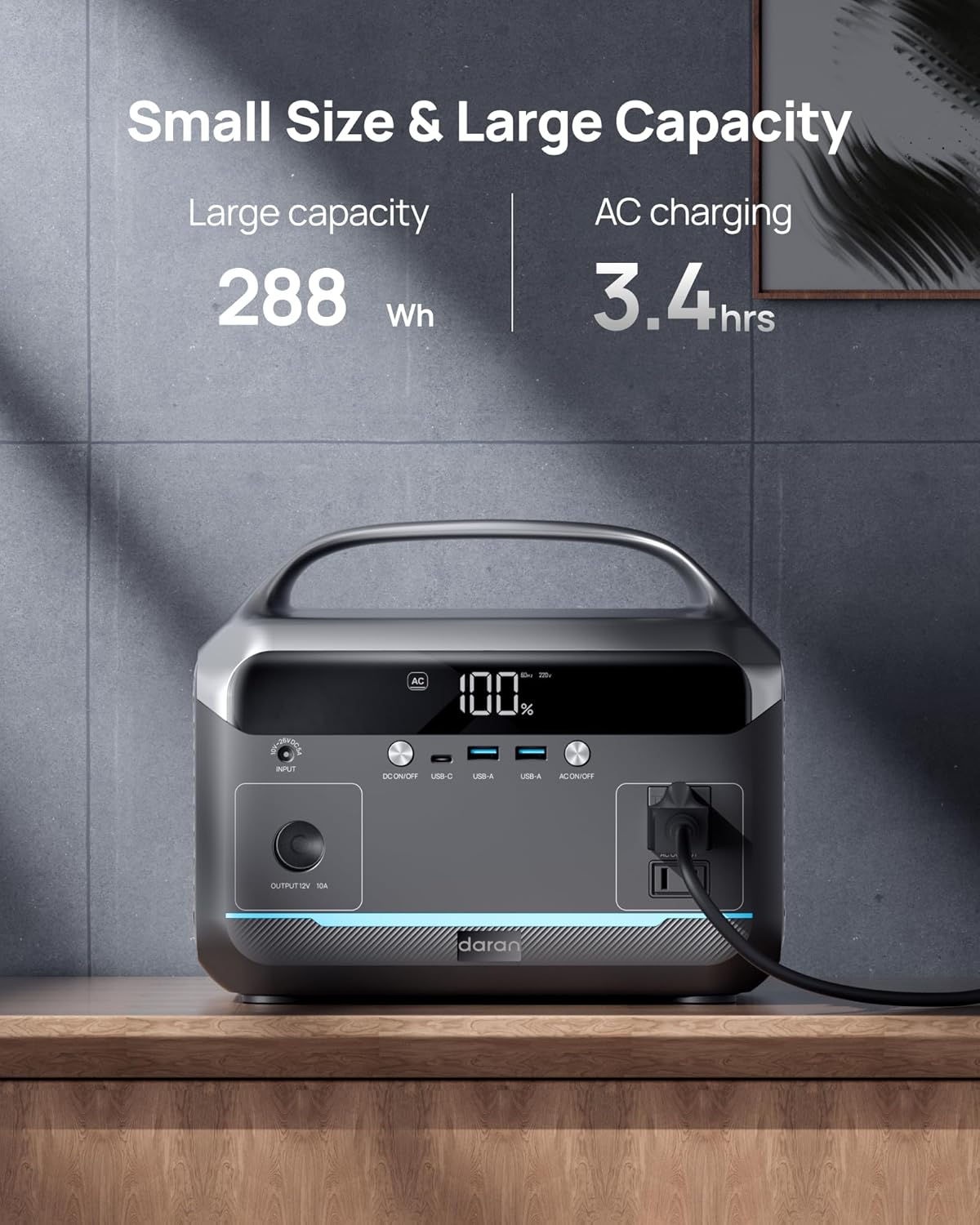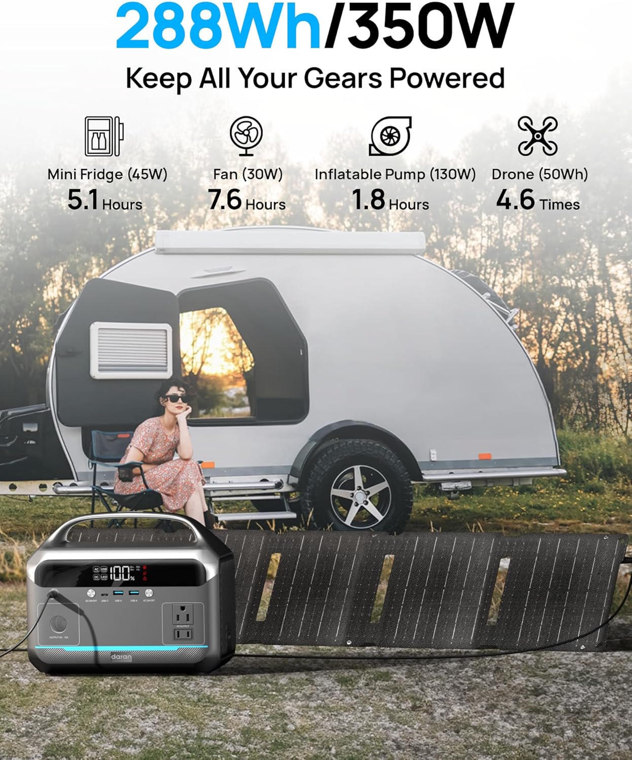 【288Wh Outdoor Power】Equipped with premium LiFePO4 cells delivering 4× longer lifespan than lithium-ion batteries, this 288Wh portable power station provides stable backup power for camping, RV trips, home emergency, CPAP devices (≤40W), laptops, phones, cameras, mini fridges and more—ideal for outdoor adventures, blackout preparedness and off-grid living(The product does not include a car charger cable.)