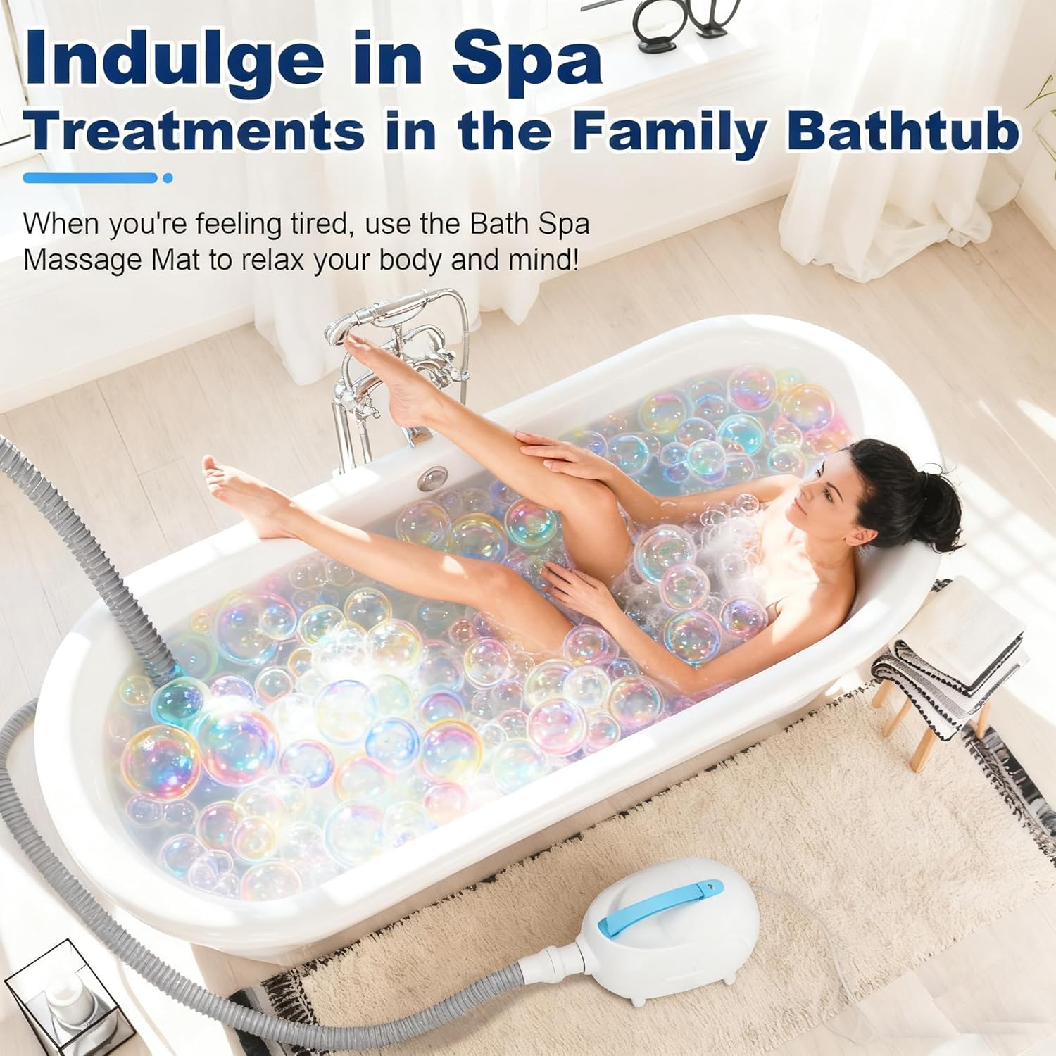 Ultra-Quiet & Powerful Operation:Enjoy undisturbed relaxation. This Bathtub Spa Mat operates at a quiet 45dB (quieter than a library), delivering intense, circulation-boosting bubbles while allowing you to comfortably listen to music or audiobooks.