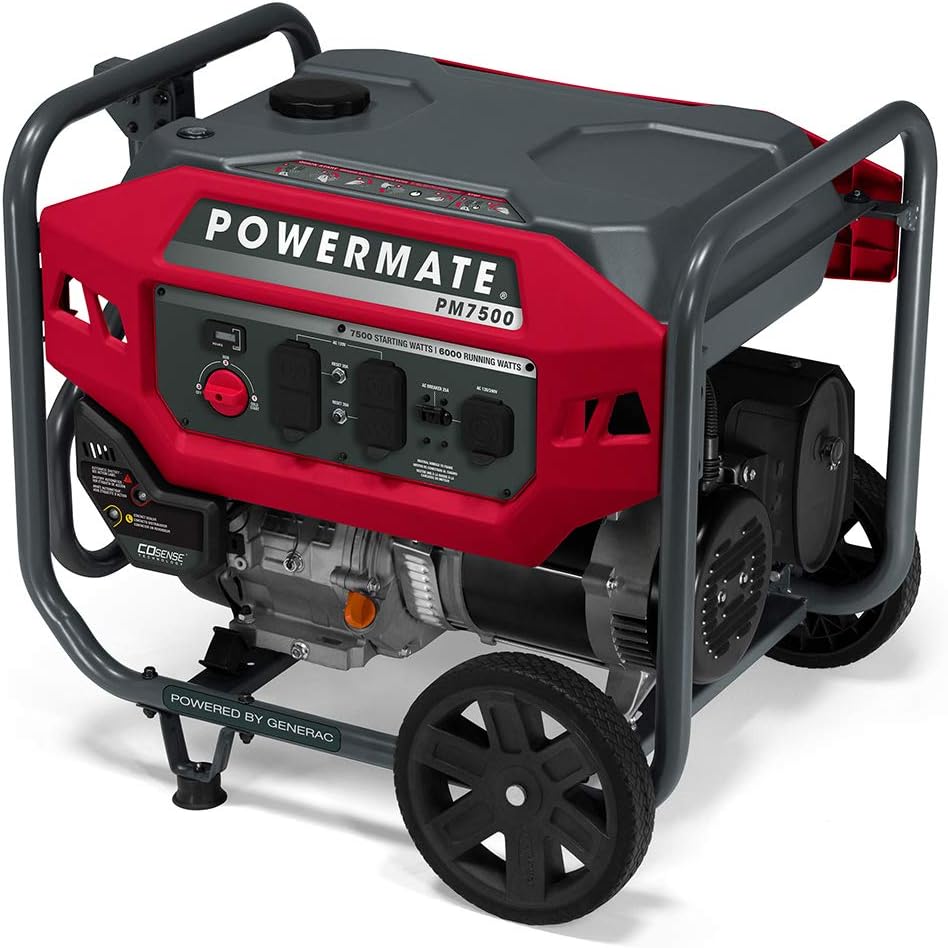 Powermate PM7500 7,500-Watt Gas-Powered Portable Open Frame Generator – Ultra-Quiet Performance – Ideal for Home, Camping, RV and Outdoor Activites – Engine Powered by Generac – Red/Black