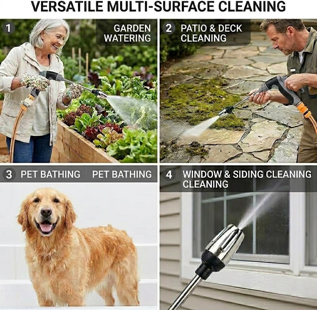 [Instant High-Pressure Cleaning] Transform your standard garden hose into a powerful jet stream without the need for a noisy gas or electric motor. Utilizing advanced hydro-kinetic technology, this wand concentrates water flow to blast away stubborn dirt, grime, and debris from driveways, patios, and decks.