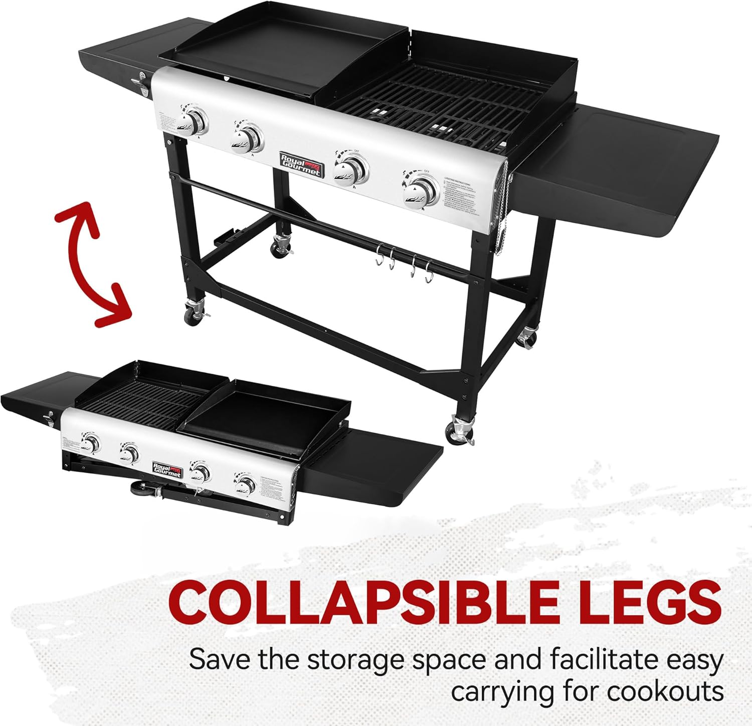 Royal Gourmet GD401C 4-Burner Propane Gas Grill and Griddle Combo with Cover, Griddle Grill Combo with 48,000 BTUs Output for Outdoor Cooking While Camping or Tailgating, Black & Silver
