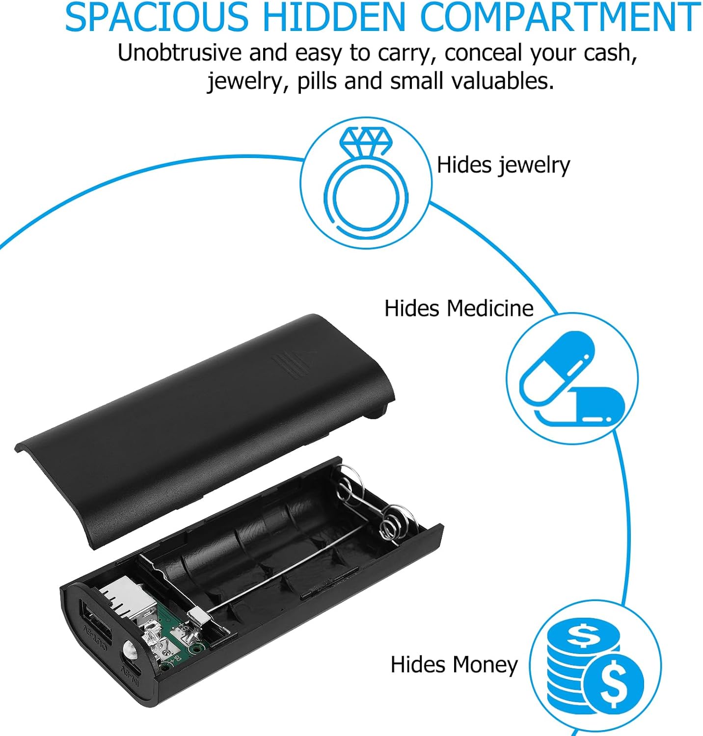 Features: – This secret stash is the ideal place to hide your mini valuables from thieves. No one will know if have valuables. Note: – Ideal for hiding smaller items.