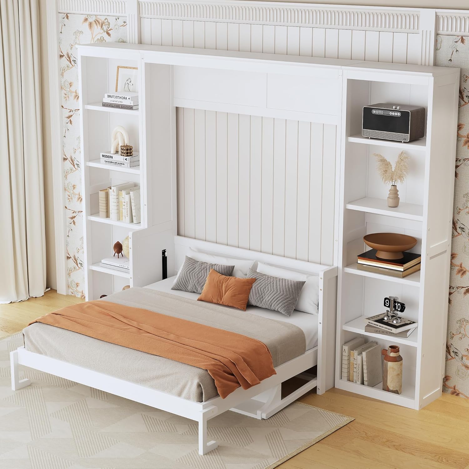[Space-Saving Bookshelf]: The hidden bed wall bed comes with a built-in storage space that accommodates both the bed frame and mattress (not included). The side open cabinet has 10 compartments allow you to keep your bedroom or living room essentials organized and within easy reach.