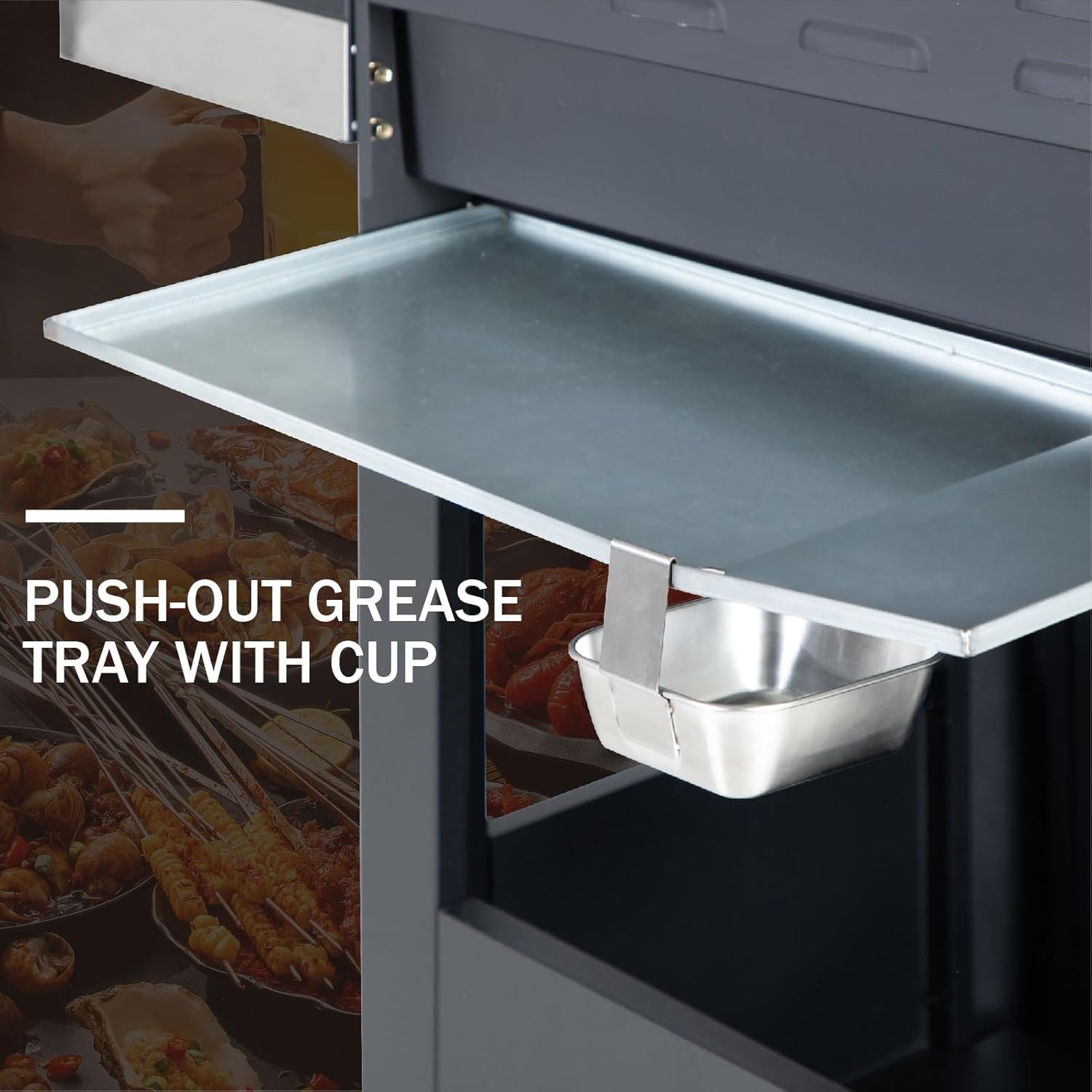 𝐄𝐚𝐬𝐲 𝐭𝐨 𝐂𝐥𝐞𝐚𝐧: The full-size grease tray slides out smoothly, making it a breeze to deal with grease and drippings while you’re grilling. Plus, the handy cup lets you easily get rid of the collected grease, keeping the post-grill cleanup hassle-free. This design also ensures your food tastes its best by preventing excessive grease from affecting the
