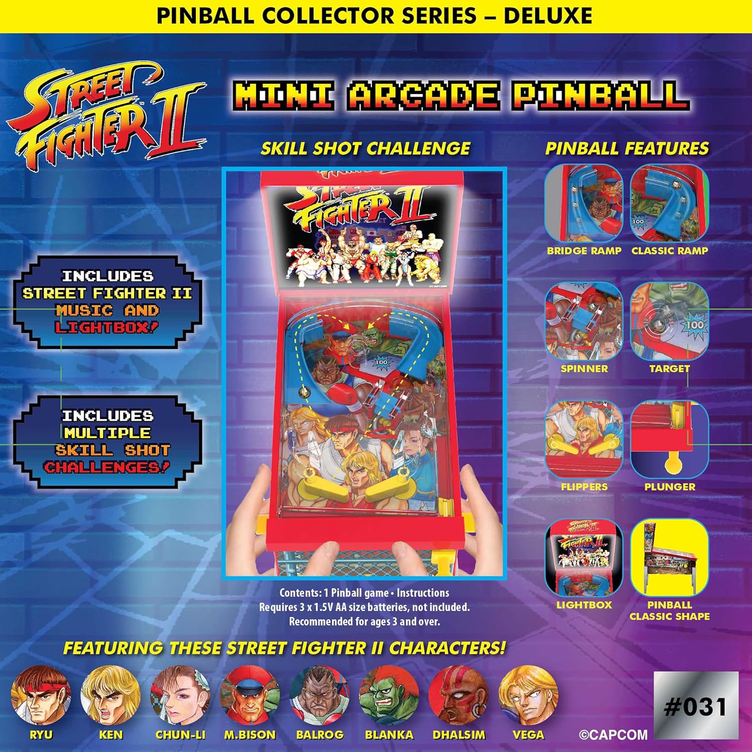 Street Fighter II: Mini Arcade Pinball – Collector Series, Lights & Sounds, Classic Tabletop Game, Skill Shot Challenges, Licensed Toy, Adults-Kids 3+