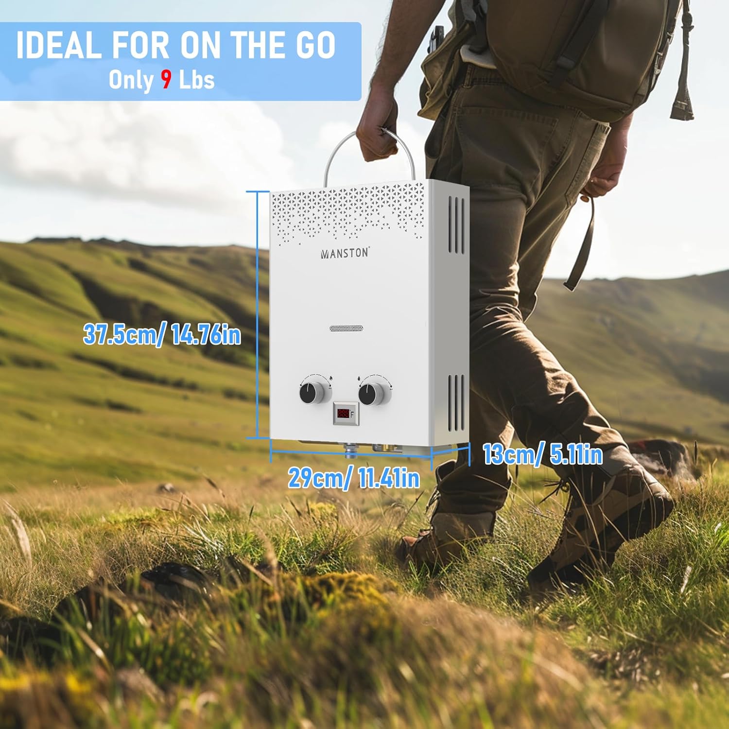 Compact Design – VANSTON water heater is design at only 9 lbs and sized 11.41″L x 5.11″W x 14.76″H, and the portable water heater’s folding handle keeps it out of the way and enables easy setup outside, perfect for camping, RV trips