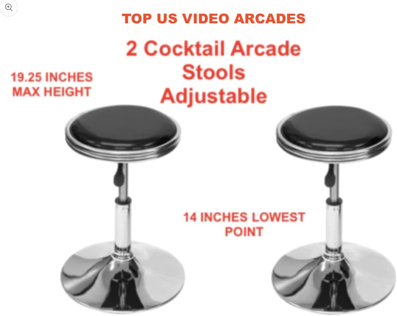 Top Us Arcades Set of 2 Swivel Bar Stools Easy Adjustable Height Leather Padded Cushion Work Home Bar Man Cave Arcade Room Garage Padding Black top Shiny Chrome