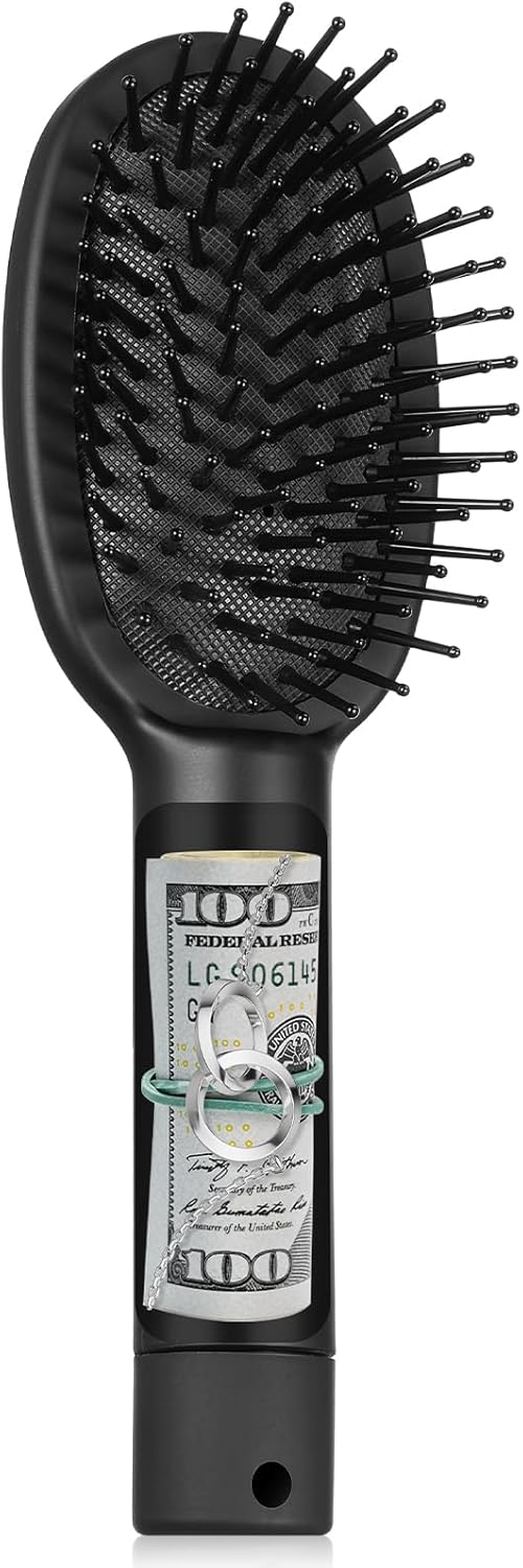 Travel Hair Brush Hidden Safe: 7.8in Portable Hair Brush Secret Compartment Items for Car & Beach – Hairbrush Hidden Compartment to Hide Money, Cash, Jewelry, Valuables, 0.75″ Wide 3.54″ Deep