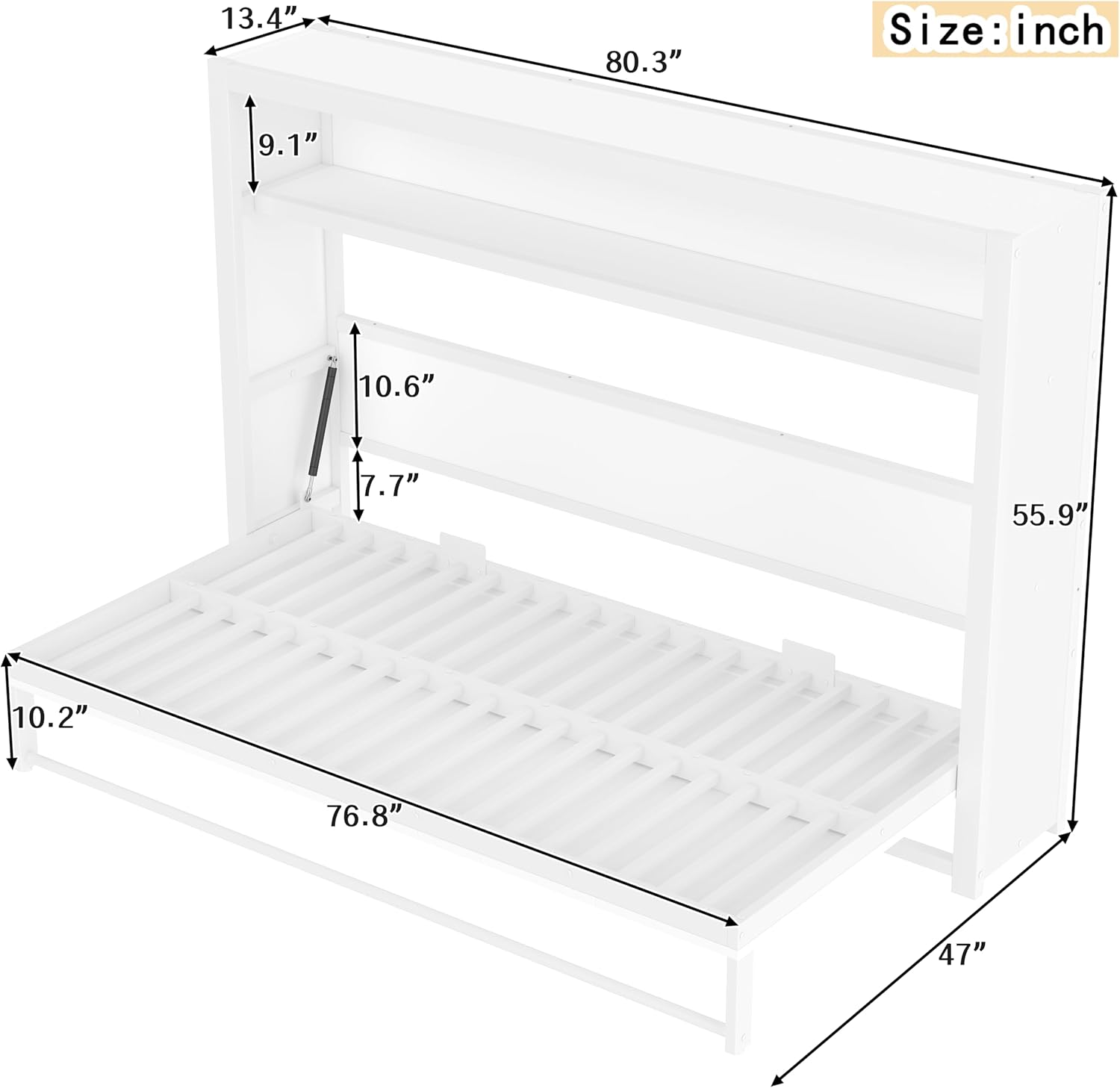 【Integrated Shelf for Storage & Decor】Twin murphy bed cabinet designed with a convenient built-in shelf, this space-saving bed gives you a spot for books, toys, or nighttime essentials. Keep your favorite items within reach while maintaining a clean, organized space.