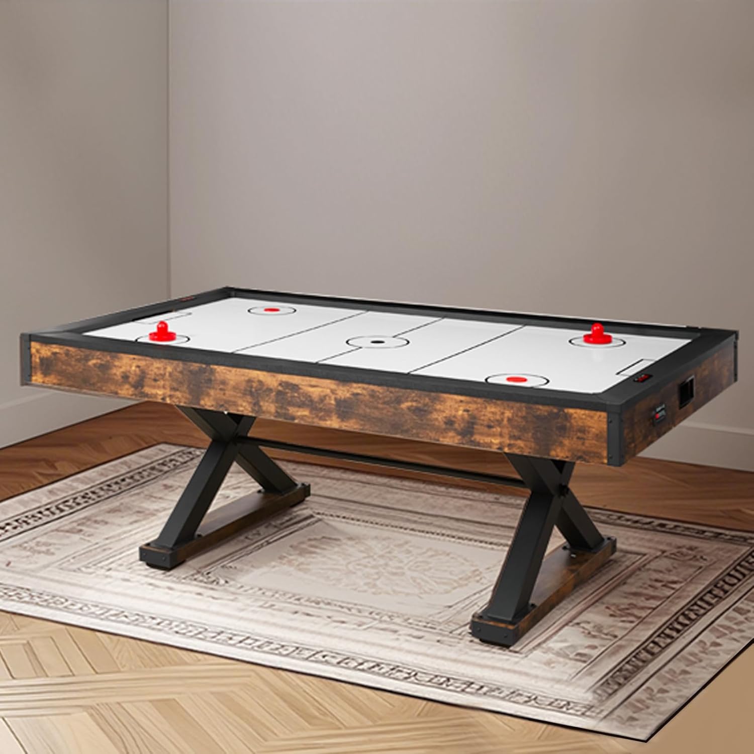 Unique Rustic Design: This air hockey table features a rustic wooden surface and a distinctive design, adding a touch of rustic charm to your modern game room. It seamlessly fits into any room in your home