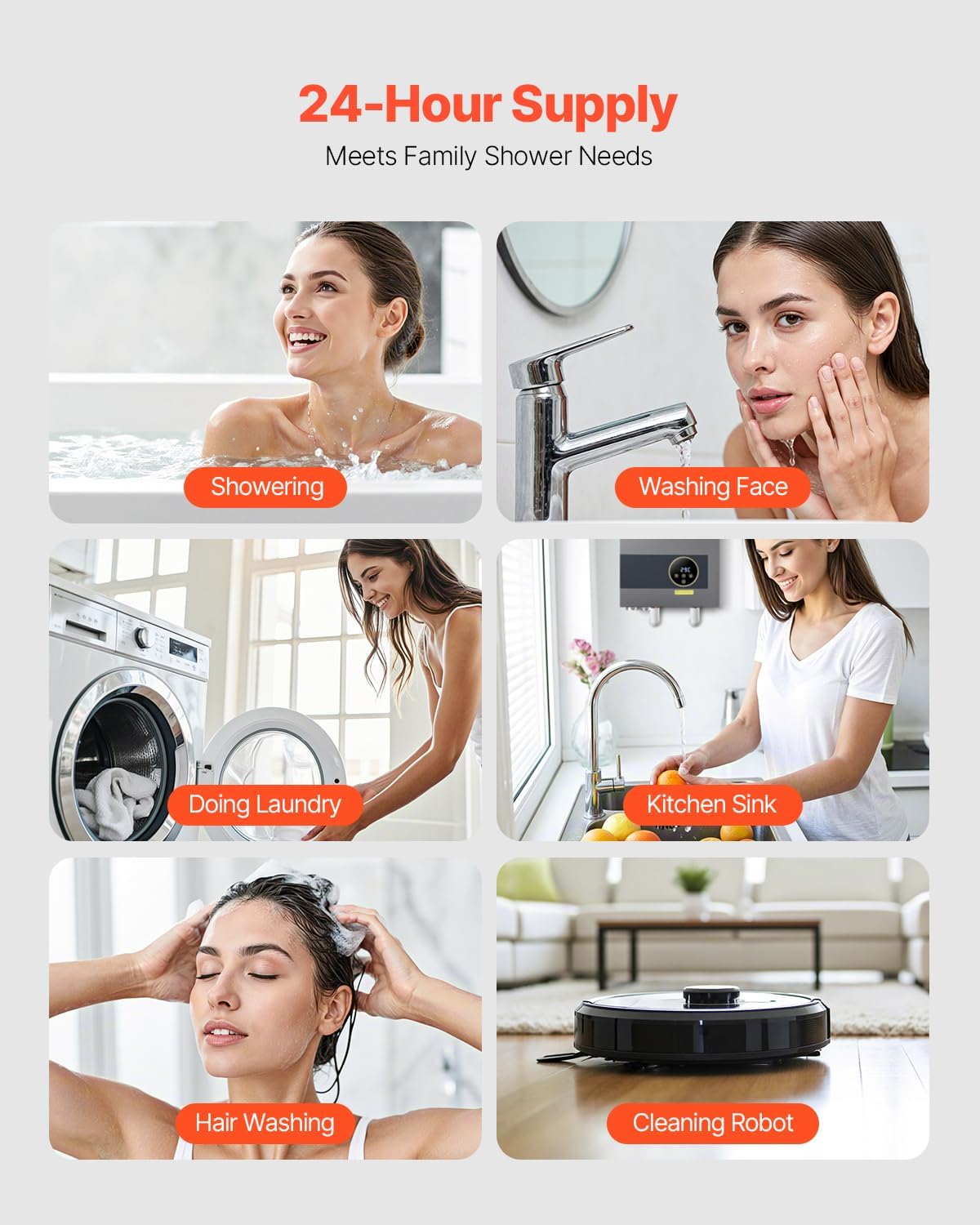 Multi-Location Use: The hot water heater is suitable for both commercial and residential use, providing 24-hour hot water supply. Whether it’s for daily showers, face washing, or commercial use like hair washing or hand washing, it meets all your needs