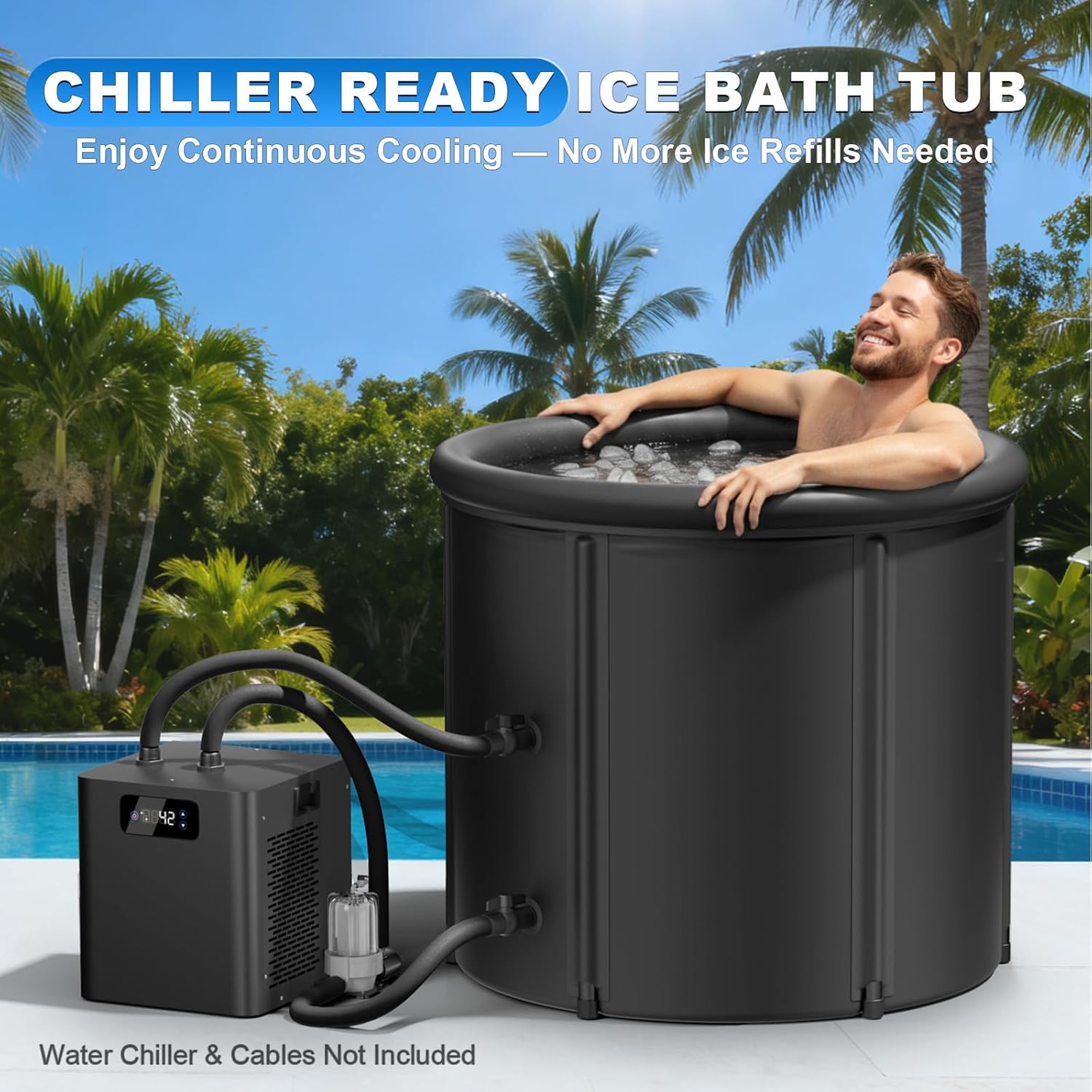 Lightweight, Portable & Quick Setup: Weighing only 9 lbs, this inflatable Ice Pod is easy to transport and sets up in minutes with the included air pump. Simply unfold, inflate, and fill—no tools required. Folds compactly for storage or travel, making it perfect for home gyms, patios, or outdoor recovery sessions on the go