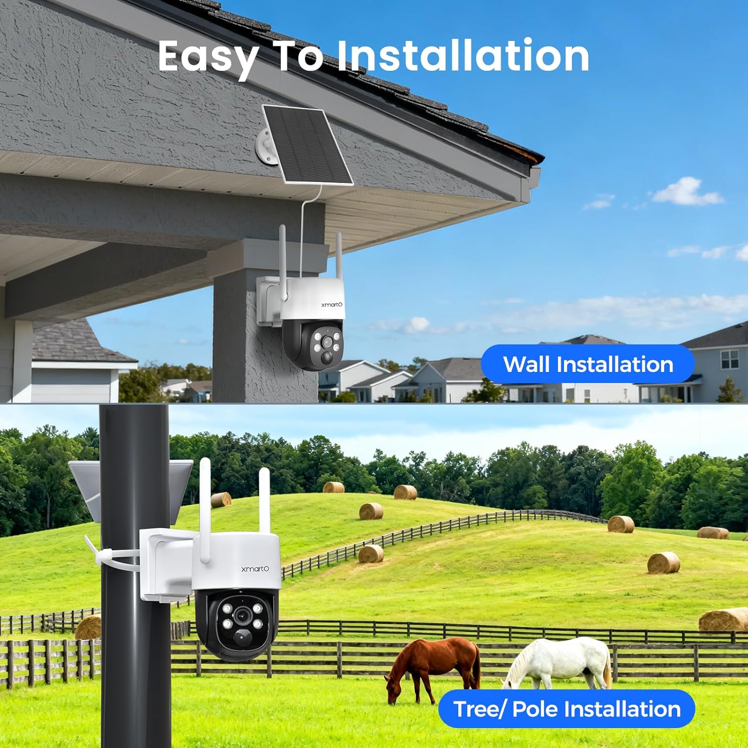 【Non-stop Solar Power】 The 8700MAH large capacity automotive-grade rechargeable batteries store more-than-enough power, and the solar panels replenish power every day, regardless it’s sunny, rainy or snowy. The All-Weather-Charge Technology keeps the cameras work with non-stop power even in winter, saving the troubles of taking cameras down for recharge. You can also use a 5V phone charger to keep the camera plugged and work with 24/7 monitoring, protecting your properties and loved ones.