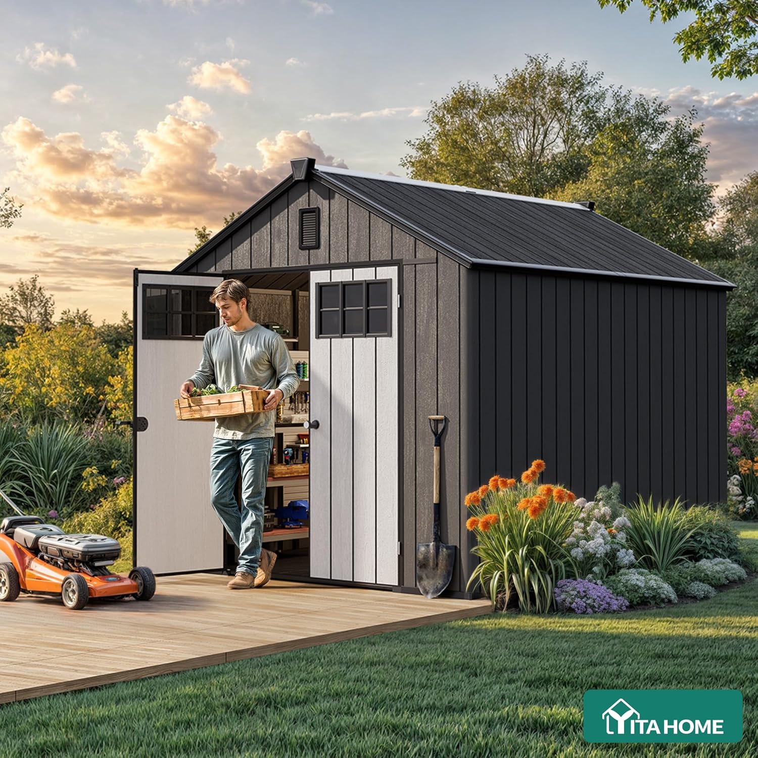 Spacious &Versatile: Transform your outdoor space with our YITAHOME storage shed 8×10 ft; With dimensions of external: 91.9″L x 115.7″W x 94.9″H, internal: 88.98”L x 112.6”W x 92.13”H, it provides ample room for bikes, garden tools, lawn mowers, and garbage bins — an ideal versatile extension to your outdoors