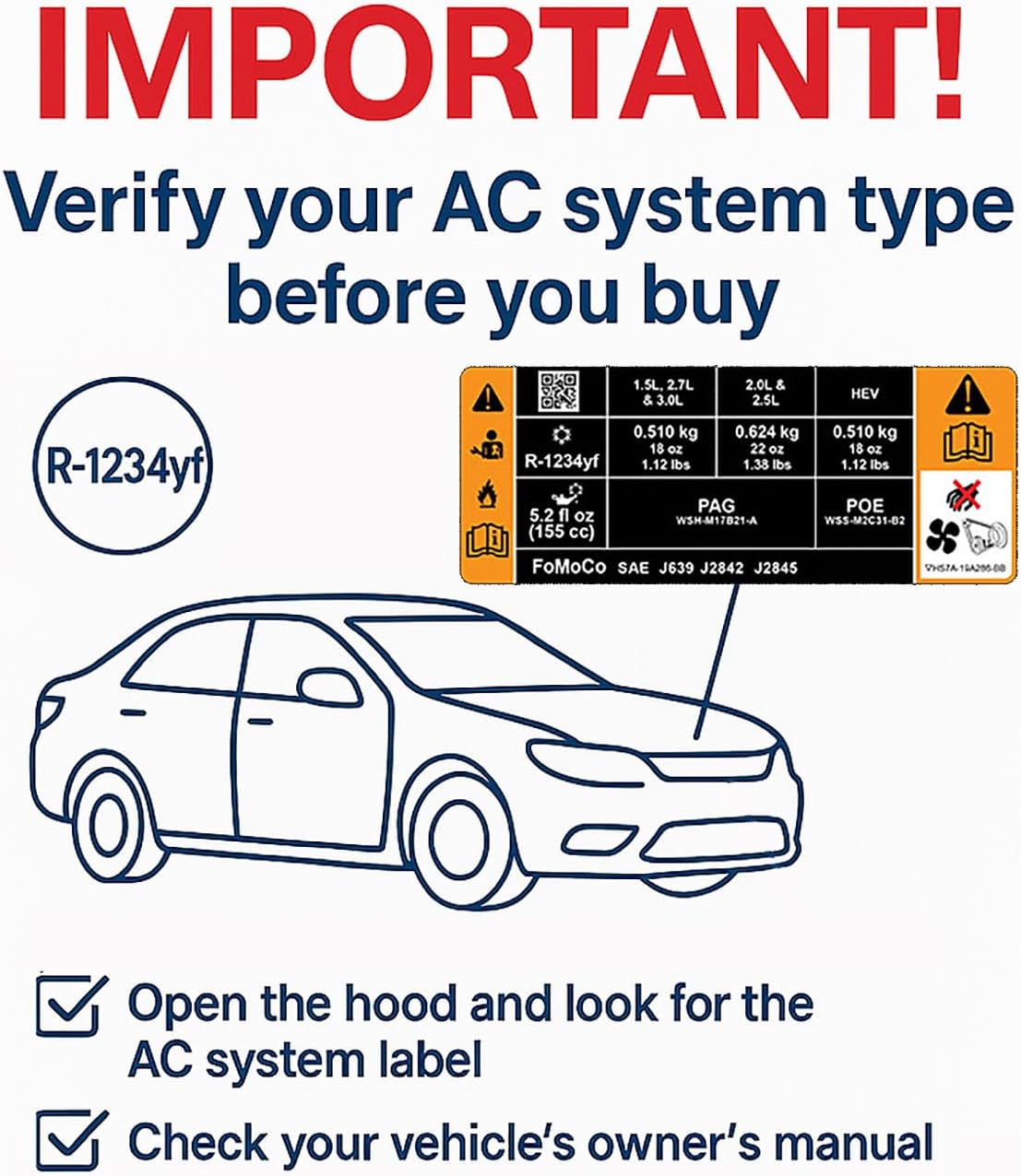 - Designed for R1234YF Systems: Specifically for systems requiring refrigerant R-1234yf; check compatibility before use.